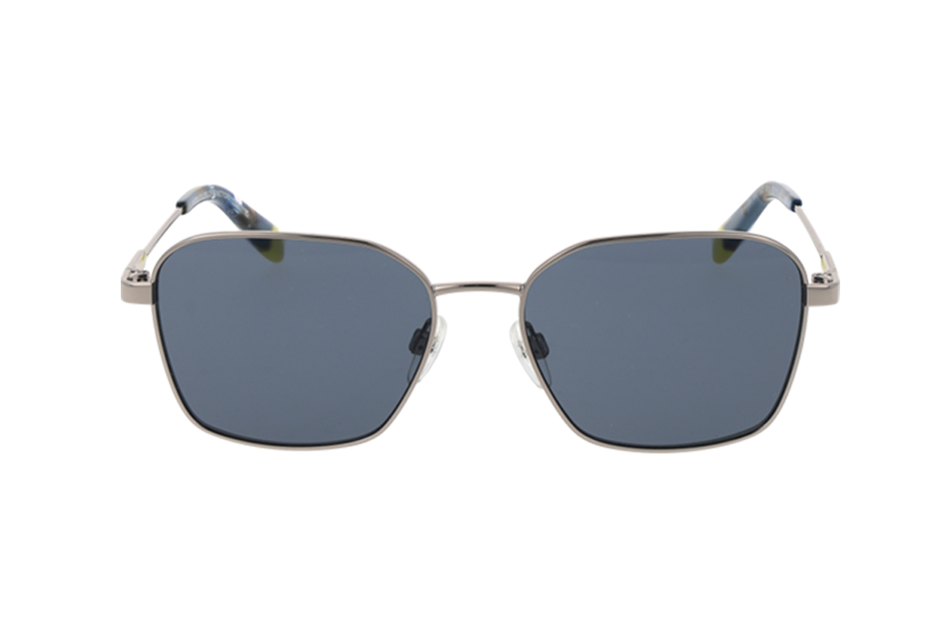 Γυαλιά ηλίου BENETTON με μεταλλικό σκελετό σε ασημί απόχρωση. Φακοί με ολοκληρωμένη προστασία UV 400 σε μαύρο χρωματισμό. Συνοδεύεται από θήκη και πανάκι.