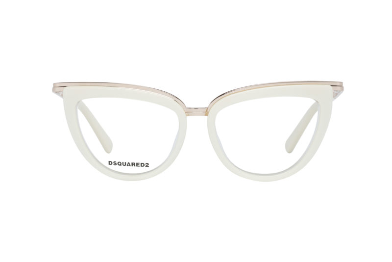 Γυαλιά οράσεως DSQUARED με κοκκάλινο σκελετό σε κρέμ χρωματισμό με χρυσούς μεταλλικούς βραχίονες. Συνοδεύεται από θήκη και πανάκι.