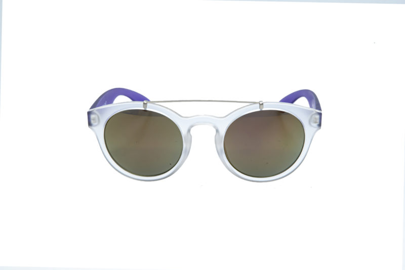 Γυαλιά ηλίου GGO με κοκκάλινο σκελετό σε διάφανη απόχρωση & μώβ βραχίονες. Φακοί με ολοκληρωμένη προστασία UV 400 σε χρυσό καθρέπτη. Συνοδεύεται από θήκη και πανάκι.
