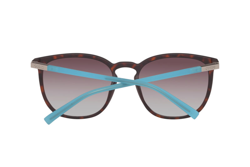 Γυαλιά ηλίου GUESS. Κοκκάλινη κατασκευή σε καφέ ταρταρούγα με γαλάζια απόχρωση. Φακοί με ολοκληρωμένη προστασία UV 400 σε καφέ degrade χρωματισμό. Συνοδεύεται από θήκη και πανάκι.