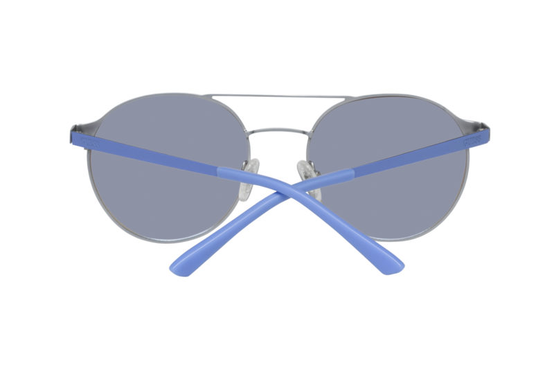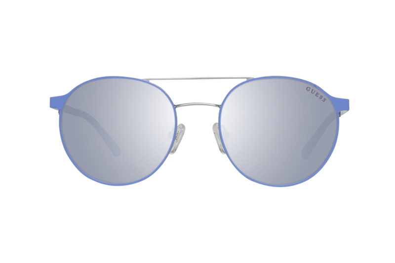 Γυαλιά ηλίου GUESS με μεταλλικό round double bridge σκελετό, σε μπλέ απόχρωση. Φακοί με ολοκληρωμένη προστασία UV 400 σε ασημί καθρέφτη. Συνοδεύεται από θήκη και πανάκι.
