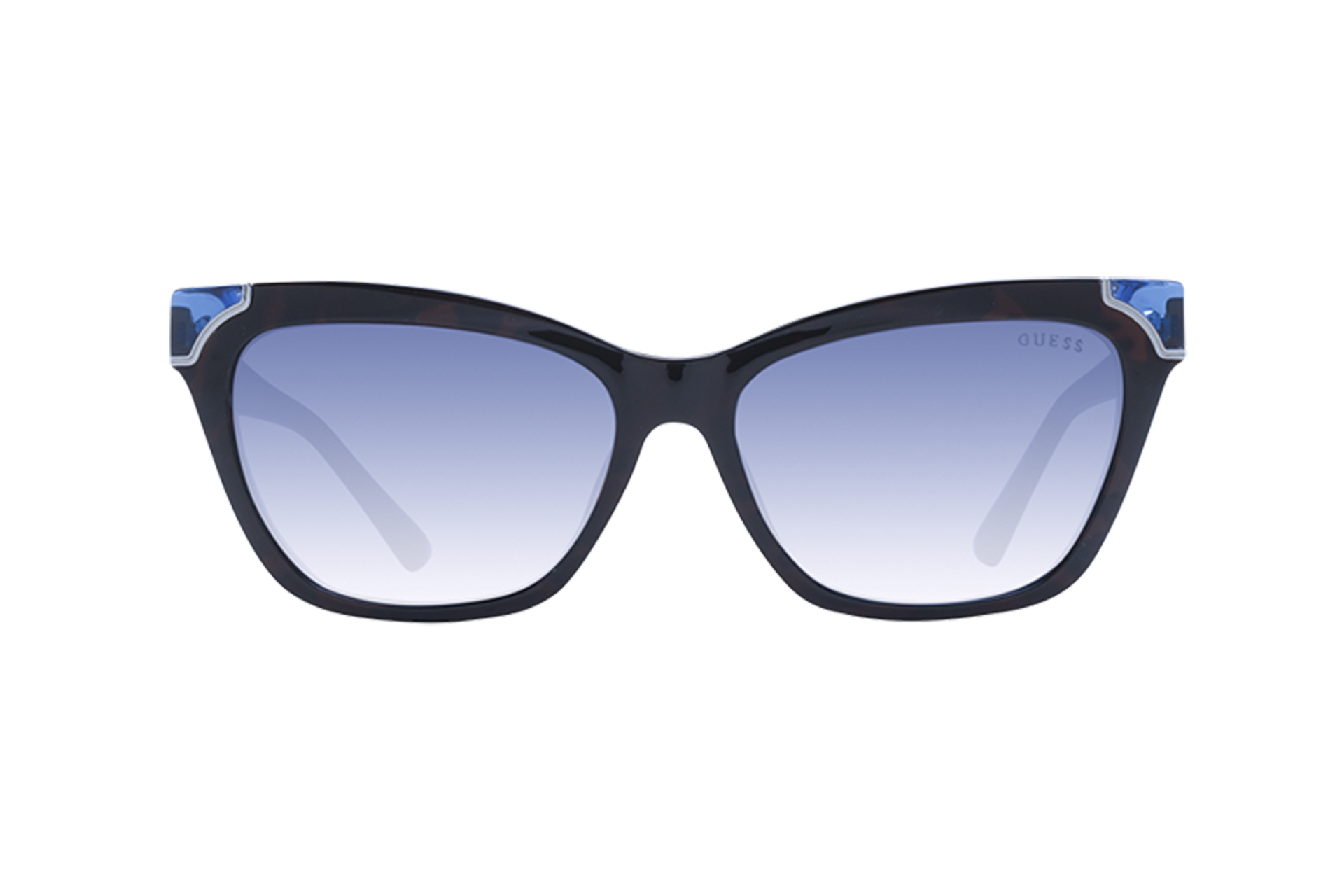 Γυαλιά ηλίου GUESS. Κοκκάλινη κατασκευή σε καφέ ταρταρούγα. Φακοί με ολοκληρωμένη προστασία UV 400 σε μπλέ degrade χρωματισμό. Συνοδεύεται από θήκη και πανάκι.