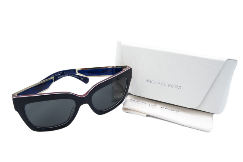Γυαλιά ηλίου MICHAEL KORS.Κοκκάλινη κατασκευή με μεταλλικούς βραχιονες σε συνδιασμό χρωμάτων κόκκινο,μπλέ & χρυσό. Φακοί με ολοκληρωμένη προστασία UV 400 σε μαύρο χρωματισμό. Συνοδεύεται από θήκη και πανάκι.