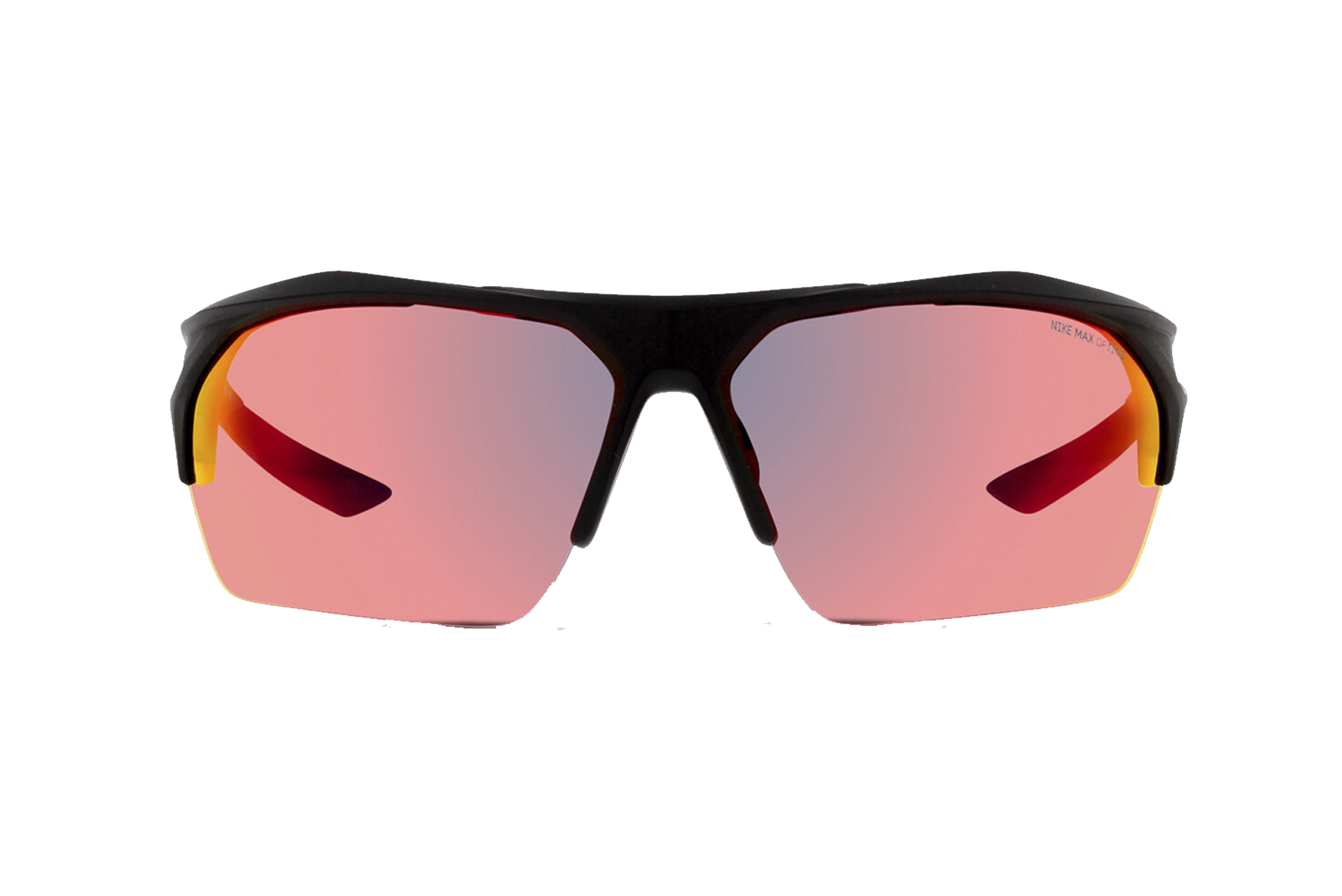Γυαλιά ηλίου NIKE με κοκκάλινο σκελετό σε μαύρο χρωματισμό. Φακοί με ολοκληρωμένη προστασία UV 400 σε κόκκινο καθρέπτη. Συνοδεύεται από θήκη και πανάκι.
