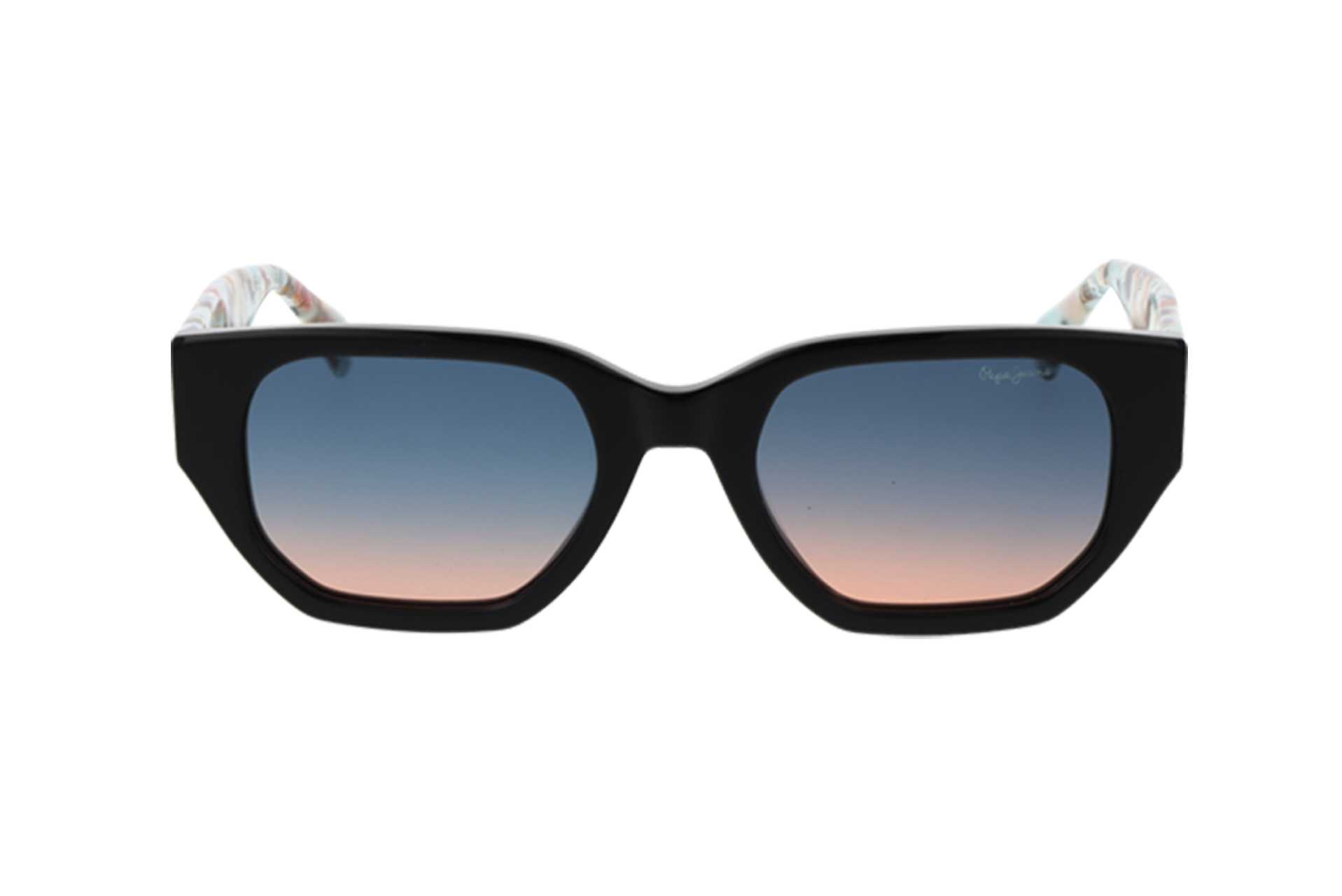 Γυαλιά ηλίου PEPE JEANS. Κοκκάλινη κατασκευή σε μαύρη απόχρωση. Φακοί με ολοκληρωμένη προστασία UV 400 σε μαύρο degrade χρωματισμό. Συνοδεύεται από θήκη και πανάκι.