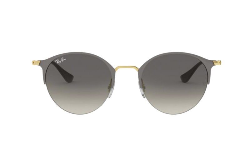 Γυαλιά ηλίου Ray Ban σε χρυσή απόχρωση με γκρί λεπτομέρειες. Φακοί με ολοκληρωμένη προστασία UV 400 σε μαύρο degarade χρωματισμό. Συνοδεύεται από θήκη και πανάκι.