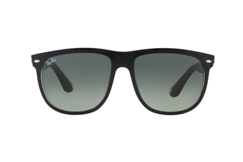 Γυαλιά ηλίου RAY BAN με κοκκάλινο σκελετό σε μαύρη απόχρωση & εσωτερικά διάφανο. Φακοί με ολοκληρωμένη προστασία UV 400 σε μπλέ degrade χρωματισμό. Συνοδεύεται από θήκη και πανάκι.
