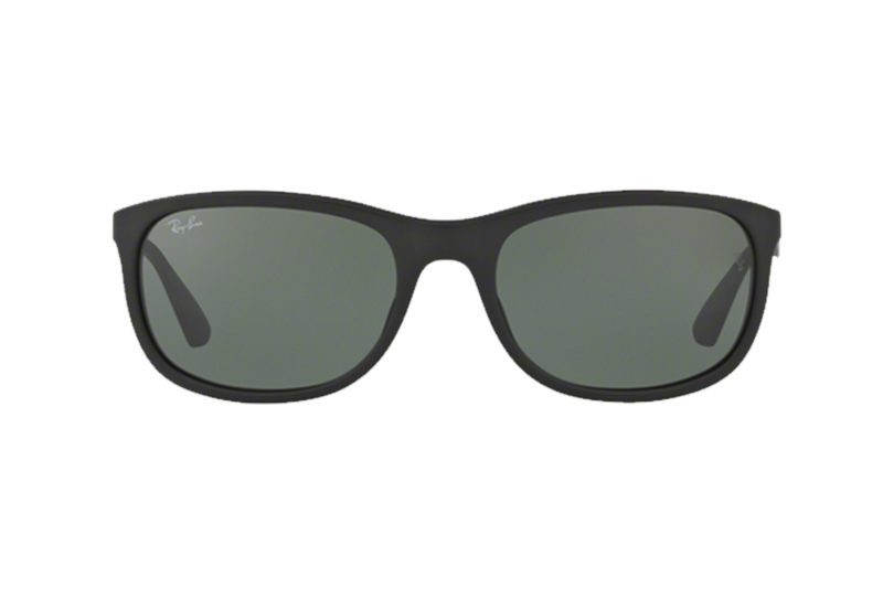 Γυαλιά ηλίου RAY BAN με κοκκάλινο σκελετό σε μαύρη μάτ απόχρωση με ασημί λεπτομέρειες στους βραχίονες. Φακοί με ολοκληρωμένη προστασία UV 400 σε πράσσινο G15 χρωματισμό. Συνοδεύεται από θήκη και πανάκι.