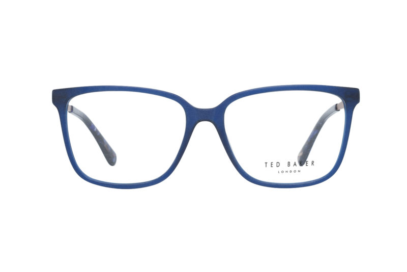 Γυαλιά οράσεως TED BAKER με κοκκάλινο σκελετό σε μπλέ απόχρωση με μπρονζέ μεταλλικούς βραχίονες. Συνοδεύεται από θήκη και πανάκι.