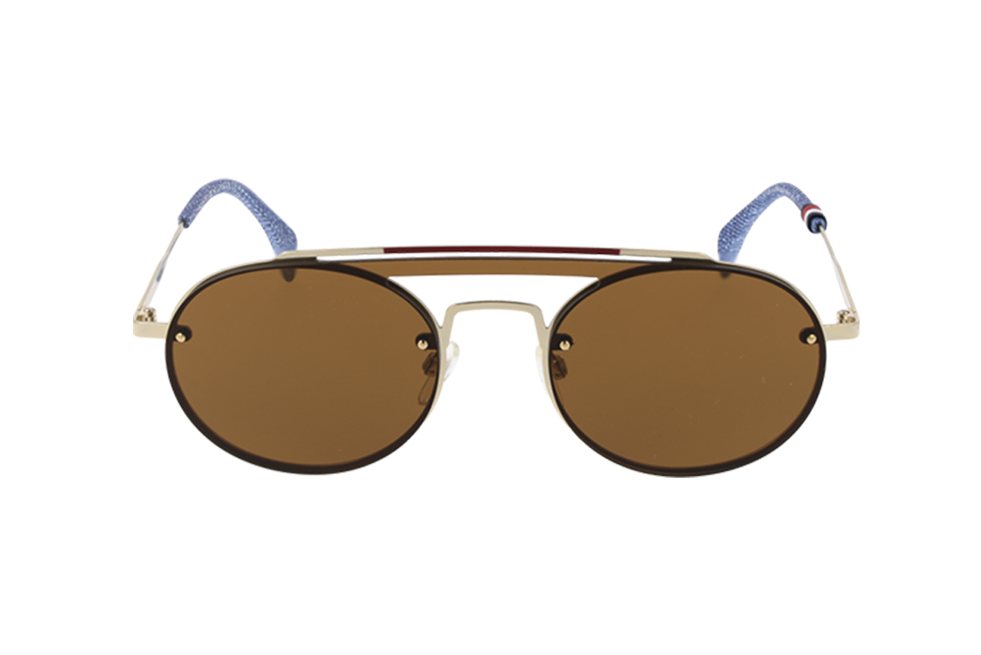 Γυαλιά ηλίου TOMMY HILFIGER με χρυσό μεταλλικό σκελετό. Φακοί με ολοκληρωμένη προστασία σε καφέ χρωματισμό. Συνοδεύεται από θήκη και πανάκι.